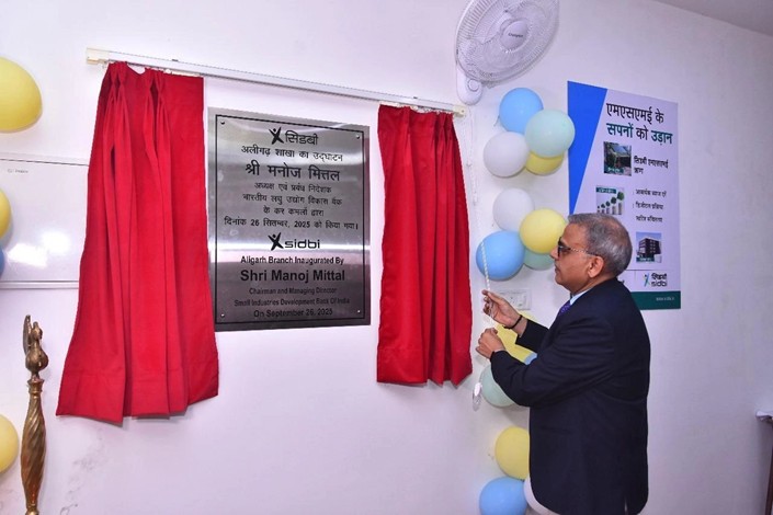 27/09/25 CMD, SIDBI Inaugurated New Branches At Greater Noida And Aligarh, Further Strengthening SIDBI’s Footprint Across Key MSME Clusters. The Greater Noida Event Saw Participation From Over 50 MSMEs And Industry Associations, Where Sanction Letters And Cheques Were Distributed. On This Occasion, CMD, SIDBI Also Shared Future-oriented Initiatives Such As The Mid Corporate Cell, R&D Funding, And Innovative Products. At Aligarh, The Focus Was On Empowering The Local MSME Cluster With Enhanced Credit Access, Along With The Distribution Of Sanction Letters And Cheques To Entrepreneurs, Thereby Reinforcing SIDBI’s Commitment To Cluster Development And Inclusive Growth. Both Events Witnessed Active Engagement From MSMEs And Industry Bodies. With These New Branches, SIDBI Continues To Expand Its Reach, Nurture Entrepreneurship, And Drive MSME-led Growth.